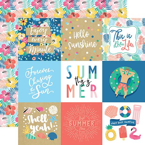 This 12x12 double-side Pattern Paper has 4x4 Journaling Cards on the frontside while the reverse has Colorful Flowers. Part of the Dive into Summer Collection by Echo Park Paper.
