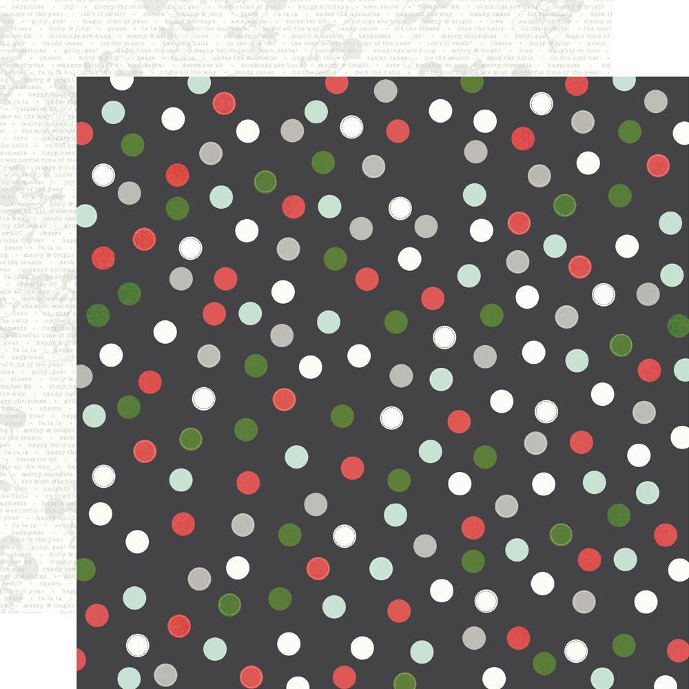 This 12x12 double-sided Designer paper has Large Colorful Dots on the frontside while the reverse side is a Distressed Off-White Color with text & The Mouse. Part of the Say Cheese Classic Mouse Christmas by Simple Stories. Look for coordinating products.